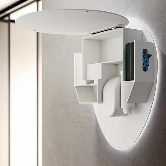 NOVO est un groupe d’hygiène extrêmement fonctionnel et compact: il permet d’avoir toujours tous les accessoires de travail essentiels à portée de main.